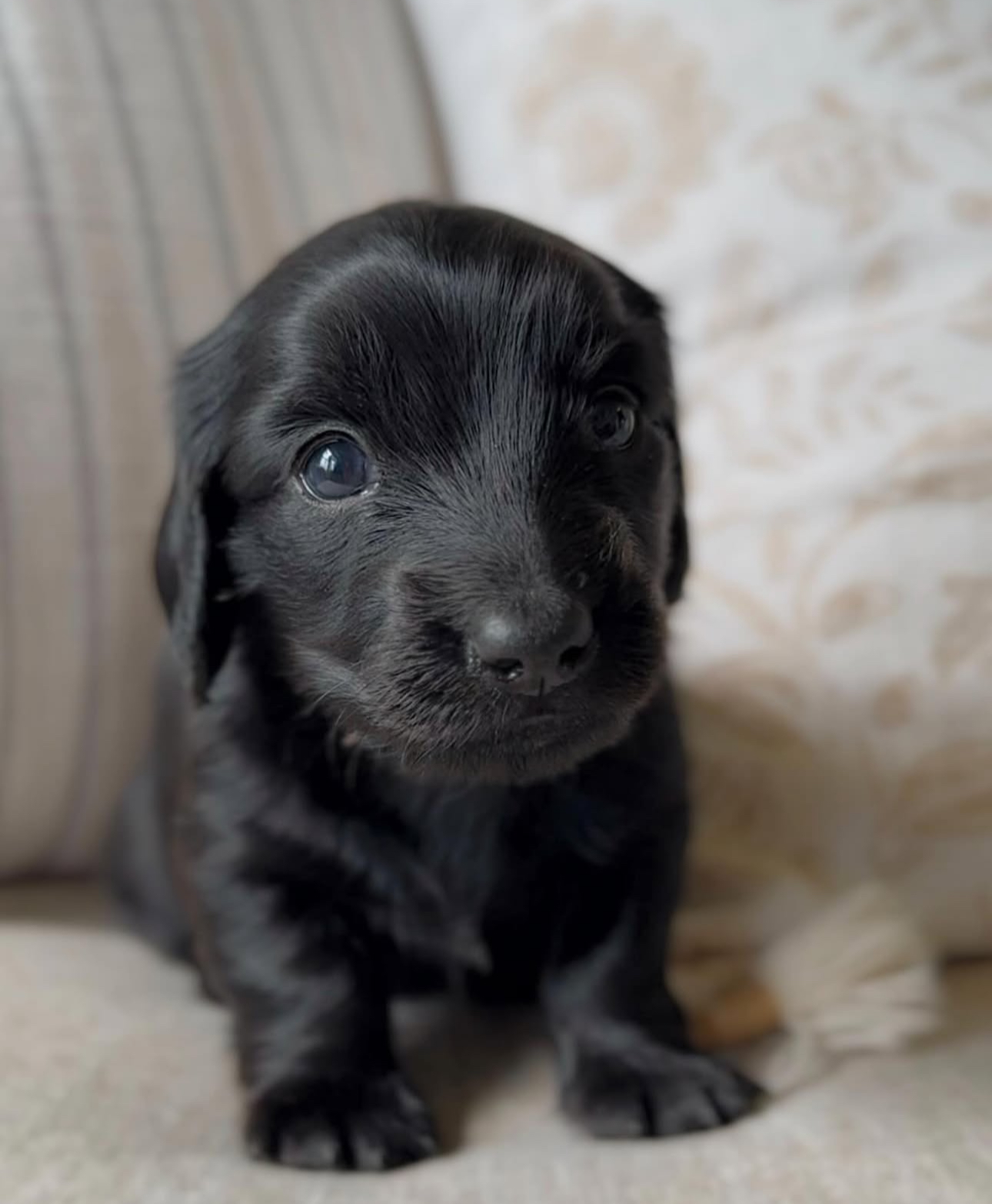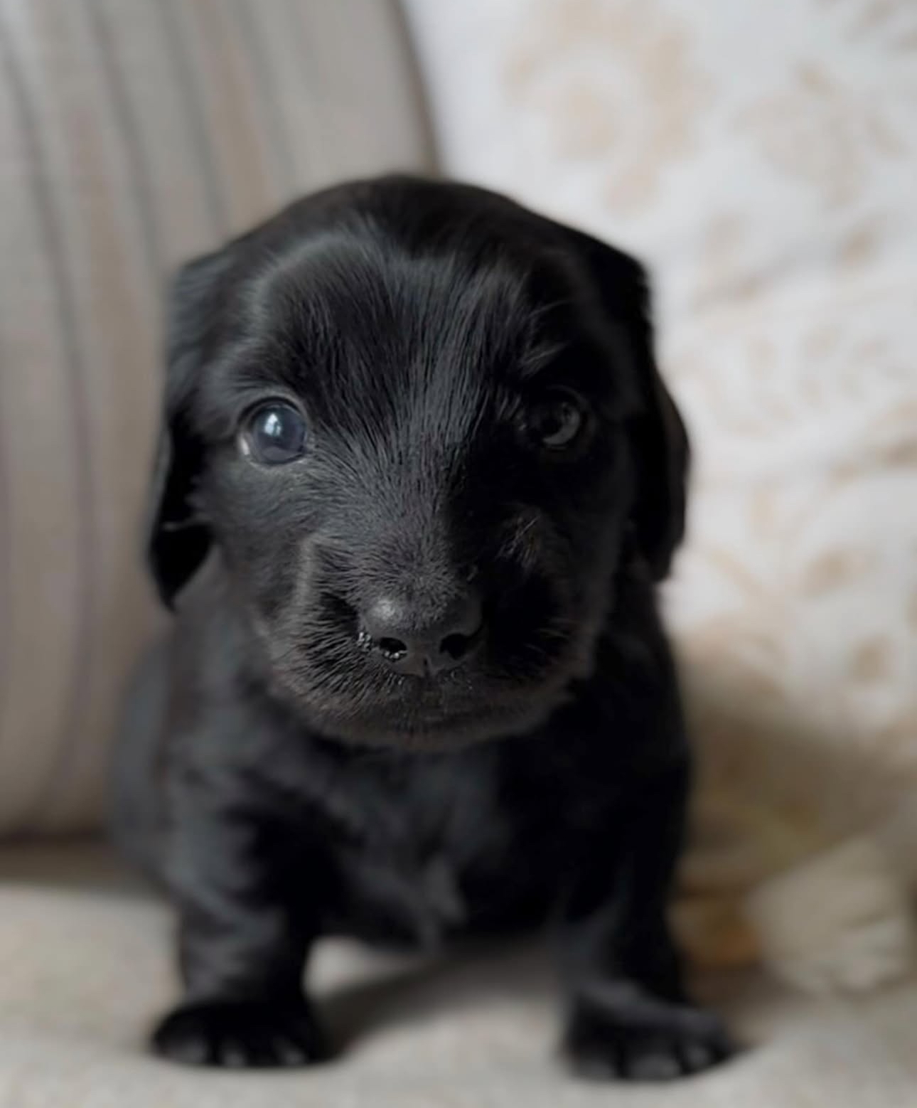 This miniature Dachshund girl has the most gentle heart and loves to be close to her humans. Her curious eyes and calm temperament make her impossible to resist. Lola is healthy, vaccinated, and 8 weeks old, ready to fill her forever home with love, cuddles, and puppy joy.